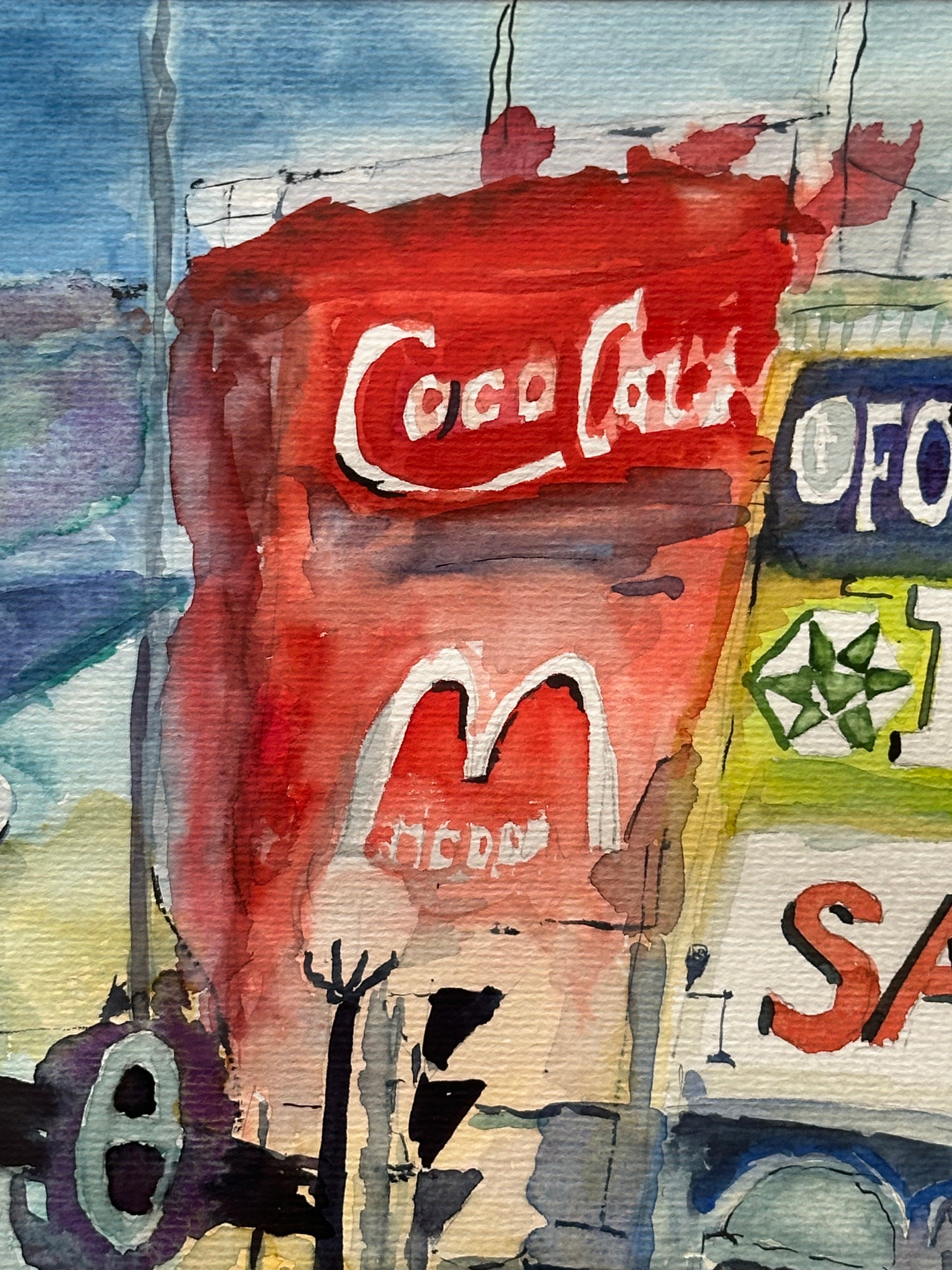 Watercolour on paper, under glass, newly hand framed in stained red wood box frame with paper mount.