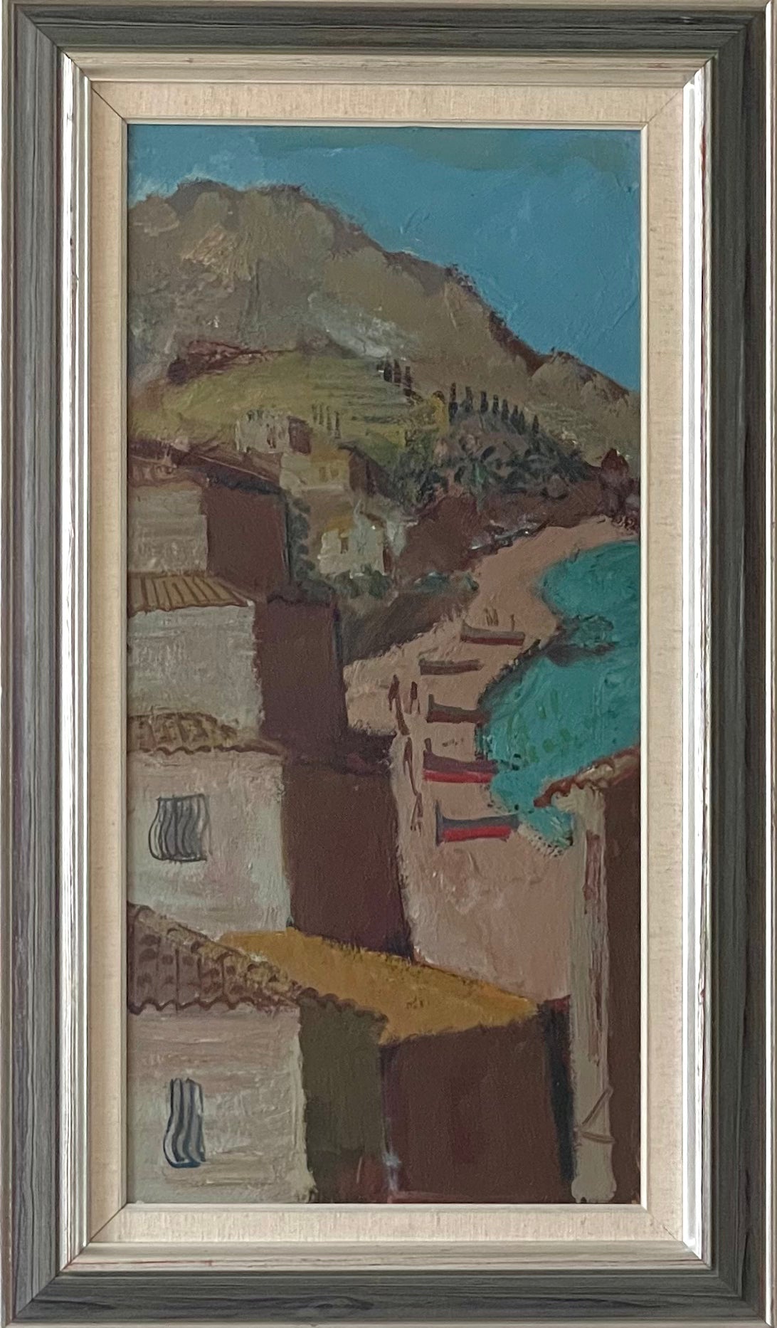 Unsigned attributed to Bertil Gunnar Wahlberg 1923-1980 (see verso of painting). Wahlberg was a painter, cartoonist and graphic artist. He travelled widely in Europe following WW2. He is known for his landscapes, although he painted a large mural in a car dealership in Stockholm in 1966. He is held in several museums in Sweden